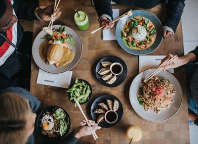 did you know our simple balanced soul food is made fresh every day in our open kitchens. plus our menu is now 50% plant-based which means you can enjoy a twist on the icon with our vegan chilli squid, or our new favourite sticky vegan ribs. our plant-based bowls don’t compromise on taste.