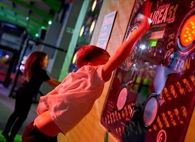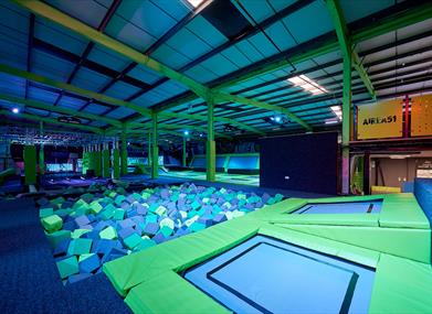AIREA51 is an indoor family adventure park in Telford. We have an onsite cafe and 7 party rooms. The main arena has a wide range of activities;