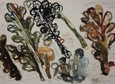 The session includes free drawing and mark-making using twigs, pods and brushes, allowing guests to explore the expressive potential of their handmade inks.