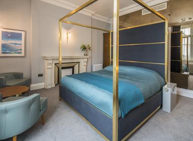 The sumptuous luxury of our contemporary suites in the main house makes this a favourite choice for groups, celebrations and weekends. Enjoy a stay in our iconic Leveson Suite with its four poster bedroom and roll top bath.