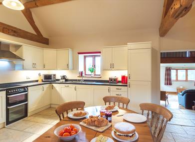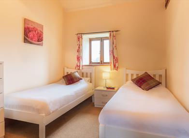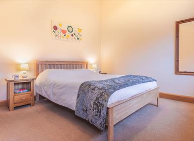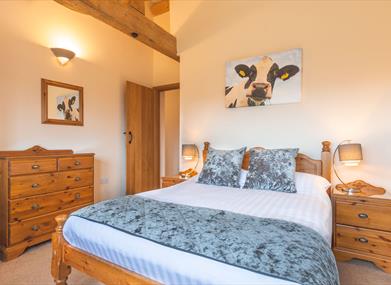 Churn cottage has two bedrooms one double & one twin room, a wetroom showerroom, living room and kitchen diner, all on one level making this cottage ideal for small children, the less able or assisted wheelchair users. Double patio doors in the living room open up to a patio area and enclosed garden which has views over the fields where the farm cattle & sheep graze.