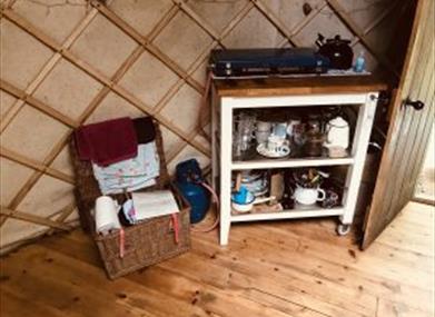The Yurt at Lees Farm gives you a generous space with a double cast iron bed & 2 single camp beds if required. Heating is provided by a wood burner in the yurt, which is lined with felt to allow for year round stays.  There is a separate gas shower and composting loo.